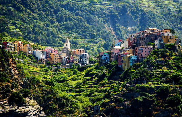 Yes, they are all distinctive, with their architectural attributes. Monterosso is the biggest, with a new and old town. Riomaggiore is very atmospheric, with lots of traditional old shops, and excellent accommodation. Plus, it’s got spectacular diving facilities. Manarola is wreathed in grapevines. It’s the heart of the regional wine industry. Corniglia is the highest village, perched on a hilltop with incredible coastal views. And Vernazza is my favourite. It’s the most picturesque, with a cute wee harbour, gorgeous beach, and an 800 hundred year old church on the foreshore, dedicated to the sailors of the region.