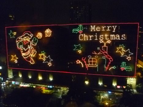 Is Hong Kong gearing up for Christmas? The city has been good to go for weeks. No expense is spared in the retail displays, that look more like mini Christmas theme parks, than just a few decorations flung about. And of course the decades old tradition of festooning the facades of multi storey buildings with monster Christmas illuminations continues.