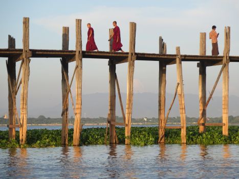 This fabled city is an absolute photo feast. Mandalay is the centre of Burmese culture and Buddhist learning. The wonderful old teak monasteries are great to explore. And Mandalay is home to a formidable army of artisans. There’s an entire street dedicated to marble sculpture. Huge creamy marble Buddha statues, crafted on site. Another great stop are the gold leaf workshops, where the artisans beat the snot out of the gold block for 5 hours, to produce the leaf foil. Brain-busting work. But the climactic attraction is to see the world’s longest teak wood bridge at sundown. It’s a 1 kilometre long pedestrian bridge on stilts. Two hundred years old. And its golden glow at sunset is like a walk in travel brochure.